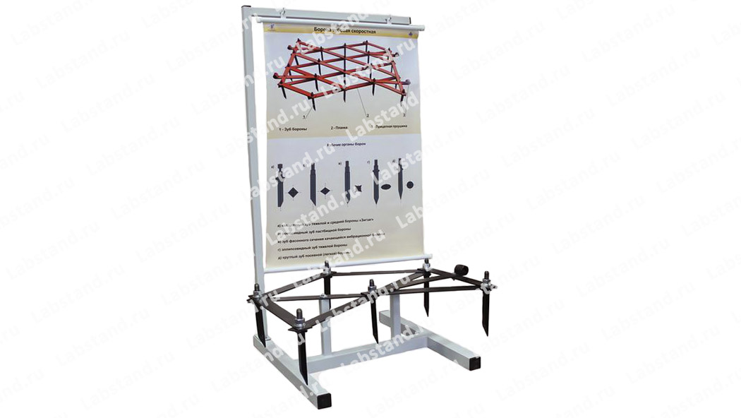 Назначение: Стенд-планшет предназначен для изучения конструкции зубовой бороны и составных элементов рабочих органов бороны.