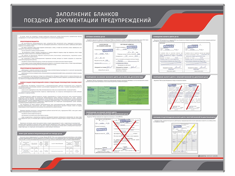 Стенд информационный "Заполнение бланков поездной документации предупреждений"