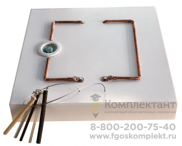 Данные палочки по очереди вставляются в ключ, в результате чего загорается лампа, если материал палочки – проводник. Проводящие материалы: медь. Не проводящие материалы: оргстекло, эбонит, резина дерево.