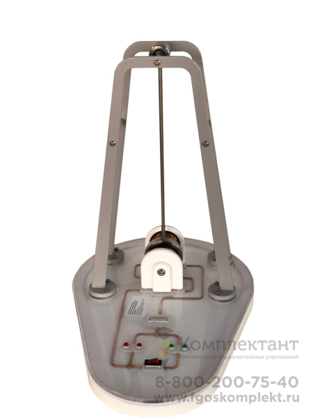 При вращении маховика приводится в движение ротор, при этом наблюдается генерация электрического тока в цепи. Электрическая цепь состоит из попеременно включающихся светодиодов и измерительного прибора.