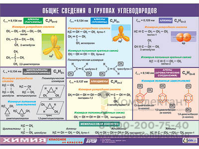 Таблица демонстрационная Общие сведения о группах углеводородов (винил 70х100)
