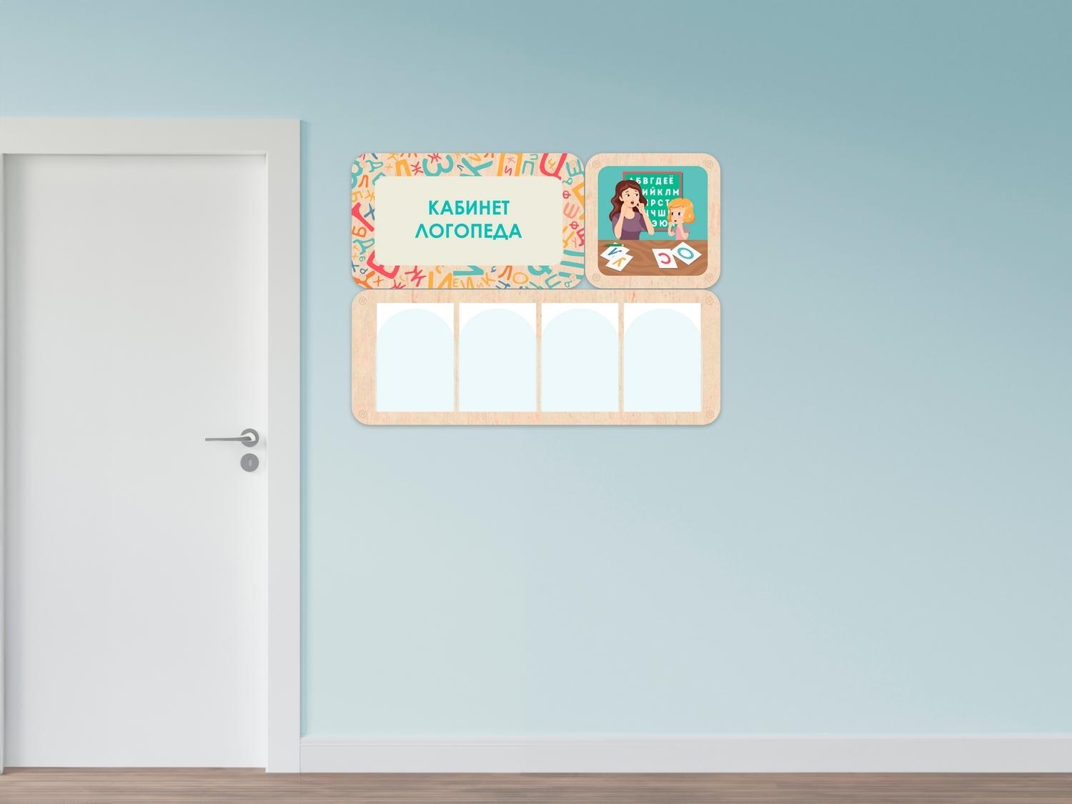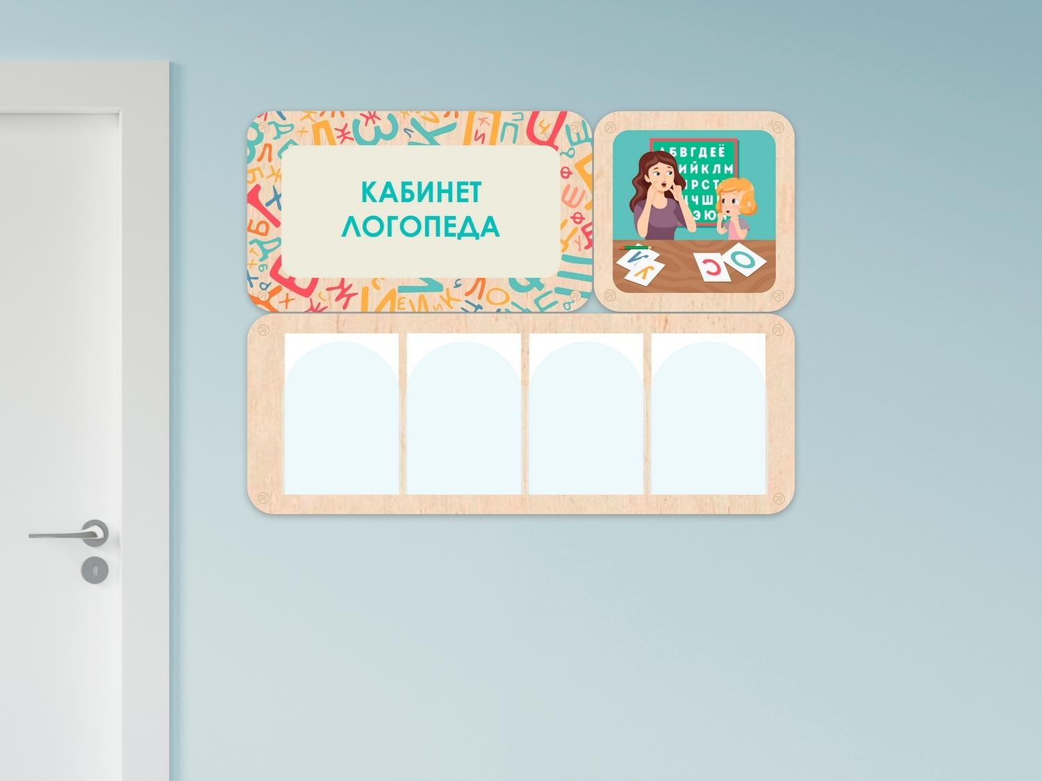 Стенд информации для детского сада, который рассказывает детям и родителям важные сведения касающиеся работы логопеда. В акриловых карманах можно разместить часы приёма, новости, правила и многое другое. Яркий заголовок акцентирует внимание посетителей на этой информации.